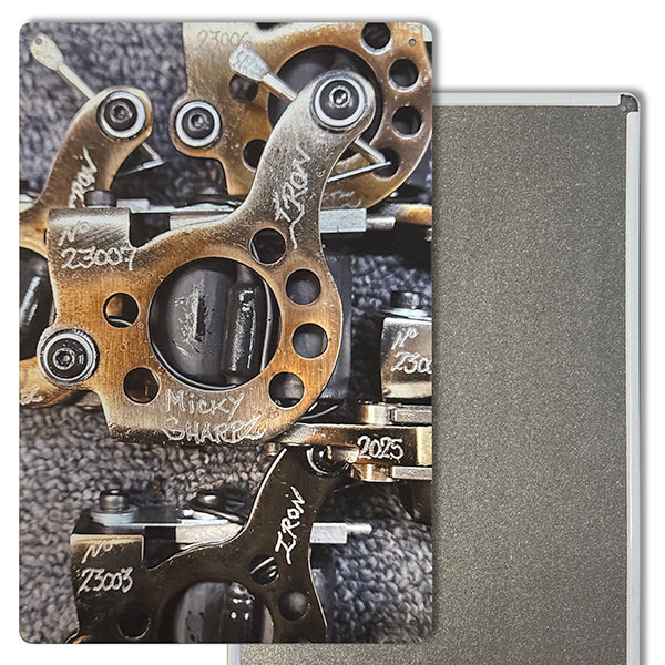 Sharpz T-Dial Sign – Printed aluminium sign from Micky Sharpz, 4 fixing holes in each corner.